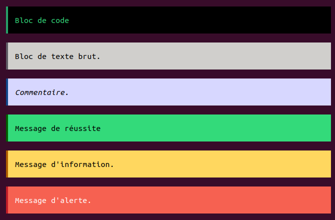 - comment : Texte en italique, en noir sur fond bleu.