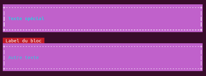 print(TµAnsi::style("<eighties label='Label du bloc'>Autre texte</eighties>"));
