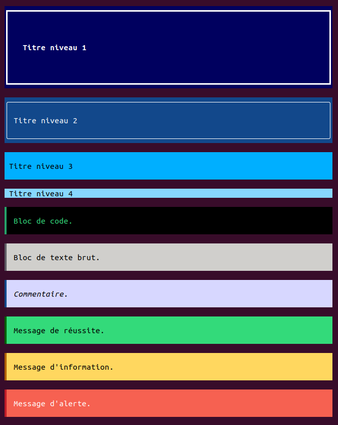 Il est possible de créer facilement des boîtes affichant des titres, avec quatre niveaux différents.